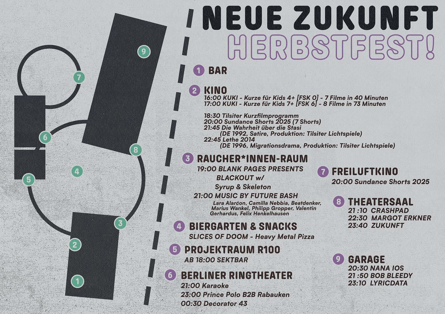 Das läuft im Kino Zukunft: Flyer 02.-08. Oktober ★★ In die Sonne schauen (Sound of Falling) ★ Sirāt ★ Rave On ★ Kreator - Hate & Hope ★ Die Möllner Briefe ★ Das Deutsche Volk ★ Kein Land für Niemand - Abschottung eines Einwanderungslandes ★ No Other Land